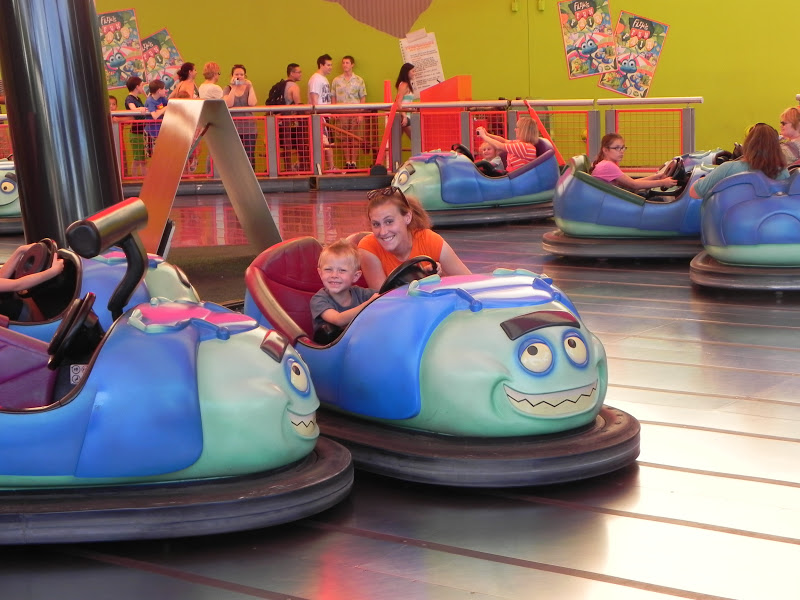 We had a great time at California Adventure. The car's ride was a lot of fun. We got fast passes right when we got into the park. We had to wait in line about 30 minutes to get the fast passes and we weren't scheduled to get on the ride until about 5 that night. It's crazy how fast they go. I think Easton's favorite ride was the tower of terror which I find funny because that was the only ride I really didn't want to go on. I waited with Blair and Dyer while Nate and Easton went. While they were gone the shuttle flew really low right over our heads. I think Nathan's favorite was the bugs life 4D Show. It was a bit intense for our kids.